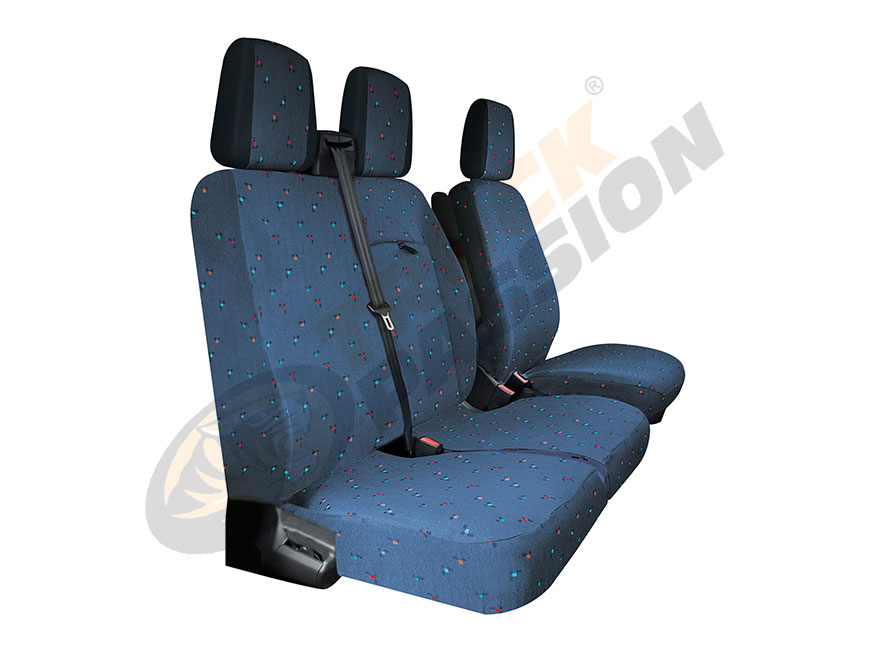 Fundas de asientos completas a medida, adaptables a FORD TRANSIT CUSTOM desde 2013. Respaldo de pasajero sin mesa.